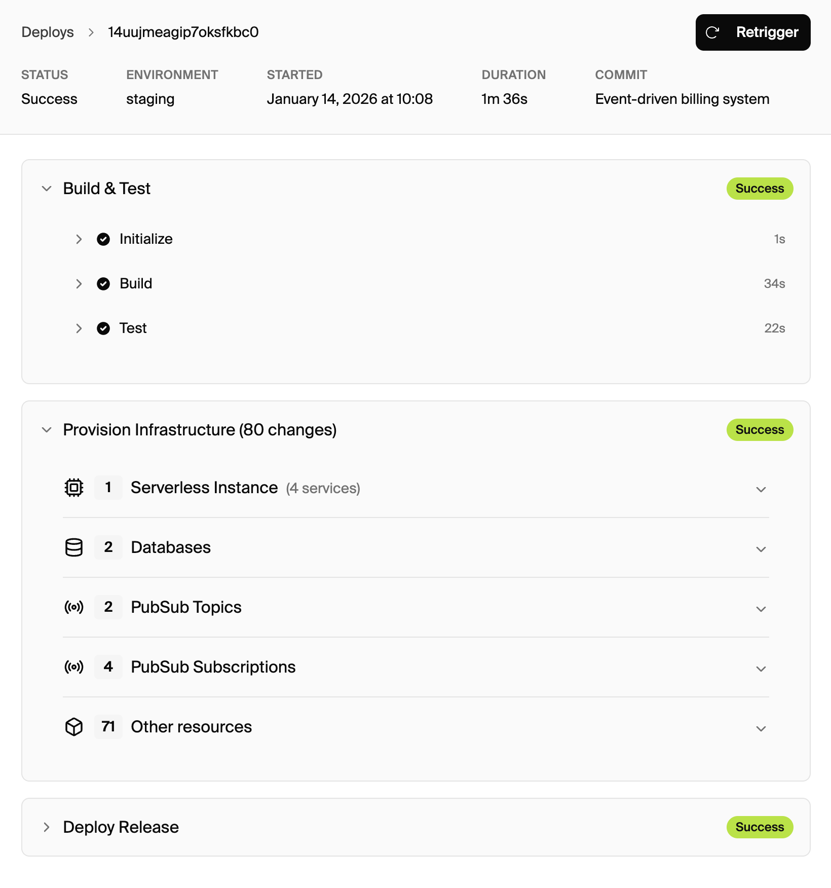 No YAML configuration, no GitHub Actions setup, no Jenkins maintenance. The CI/CD pipeline is purpose-built for Encore applications, including automatic preview environments for every PR.