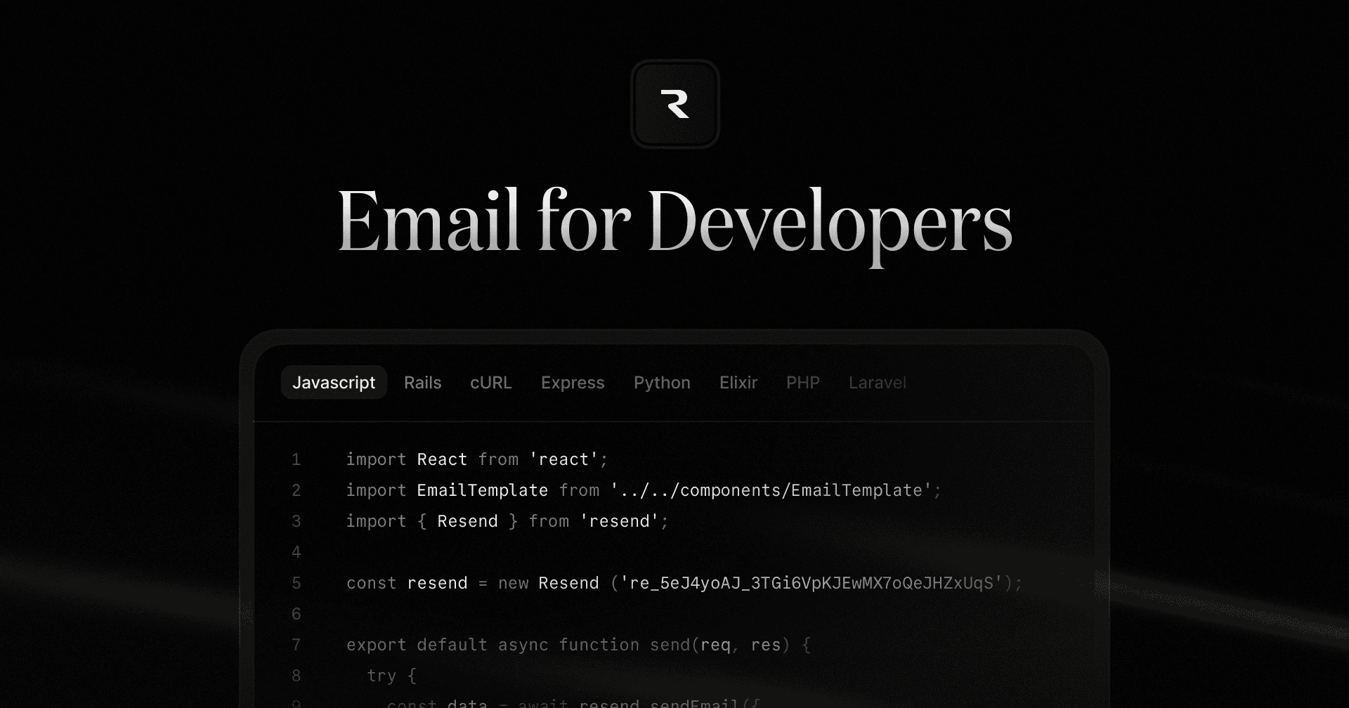 You send emails through a simple API. Resend handles DKIM, SPF, DMARC, bounce handling, and deliverability so you don't have to deal with email infrastructure.
