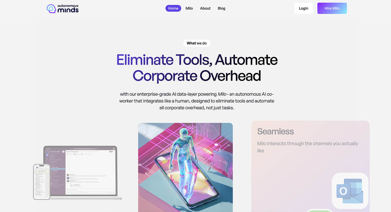 Autonomous Minds provides an autonomous AI co-worker that integrates like a human, designed to eliminate tools and automate all corporate overhead.