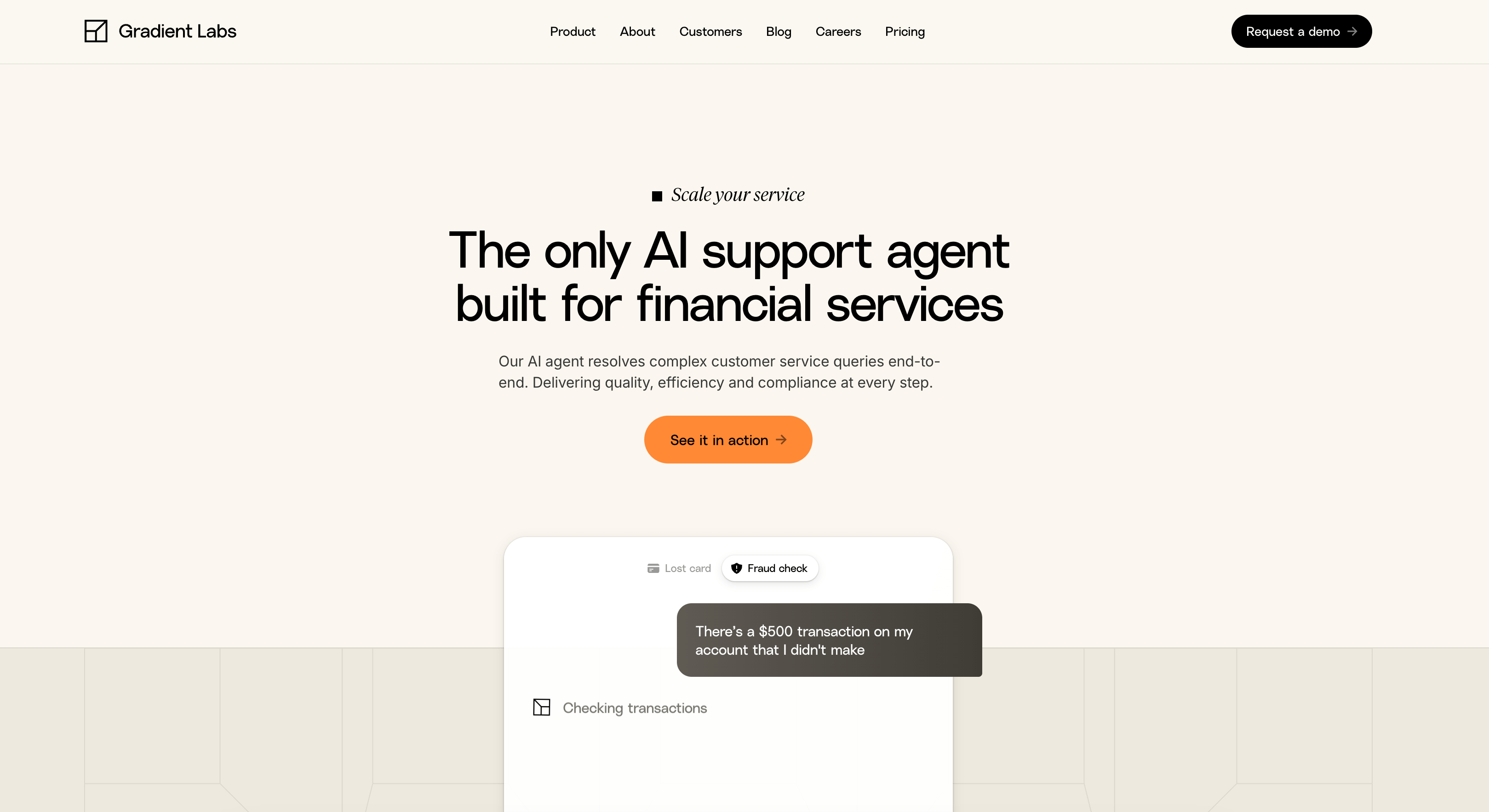 Gradient Labs offer a leading customer support AI agent, handling complex tasks.