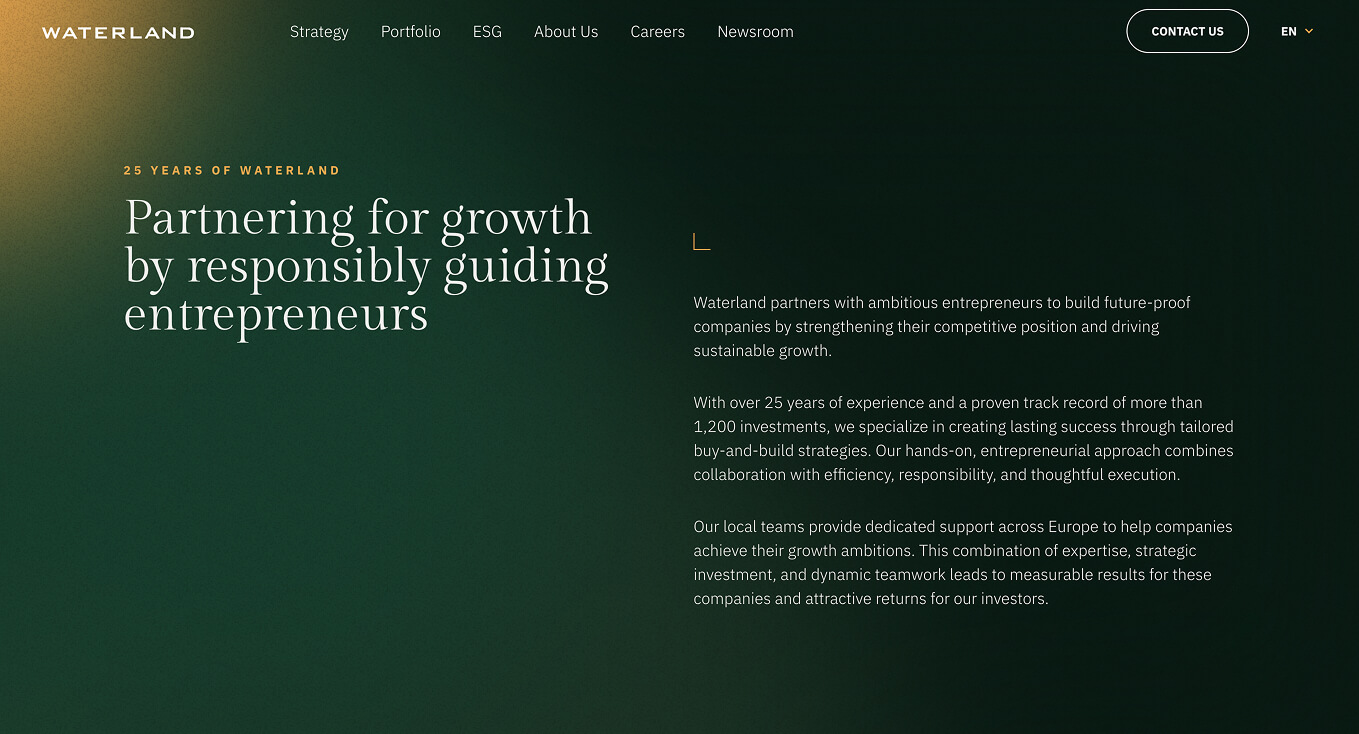 Waterland is an independent private equity firm partnering with ambitious entrepreneurs to build future-proof companies.